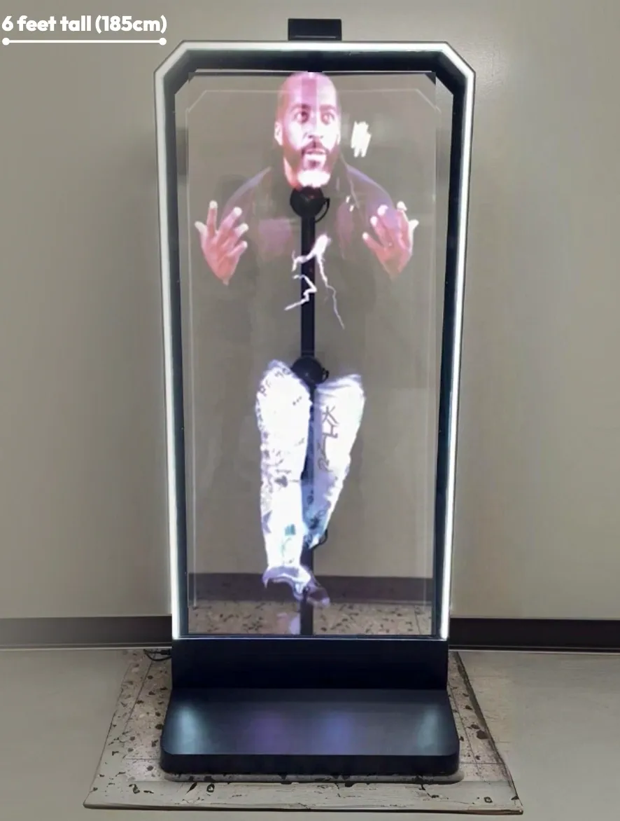 Our giant 6-foot (2 meter) tall human-size hologram array is a real showstopper!
